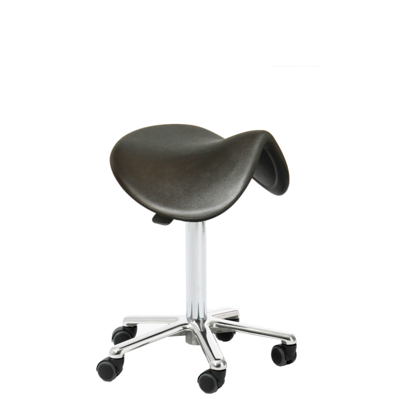 A fully adjustable saddle seat suitable for use in clean room environment's. With a tilting seat mechanism and a 500mm aluminium base.